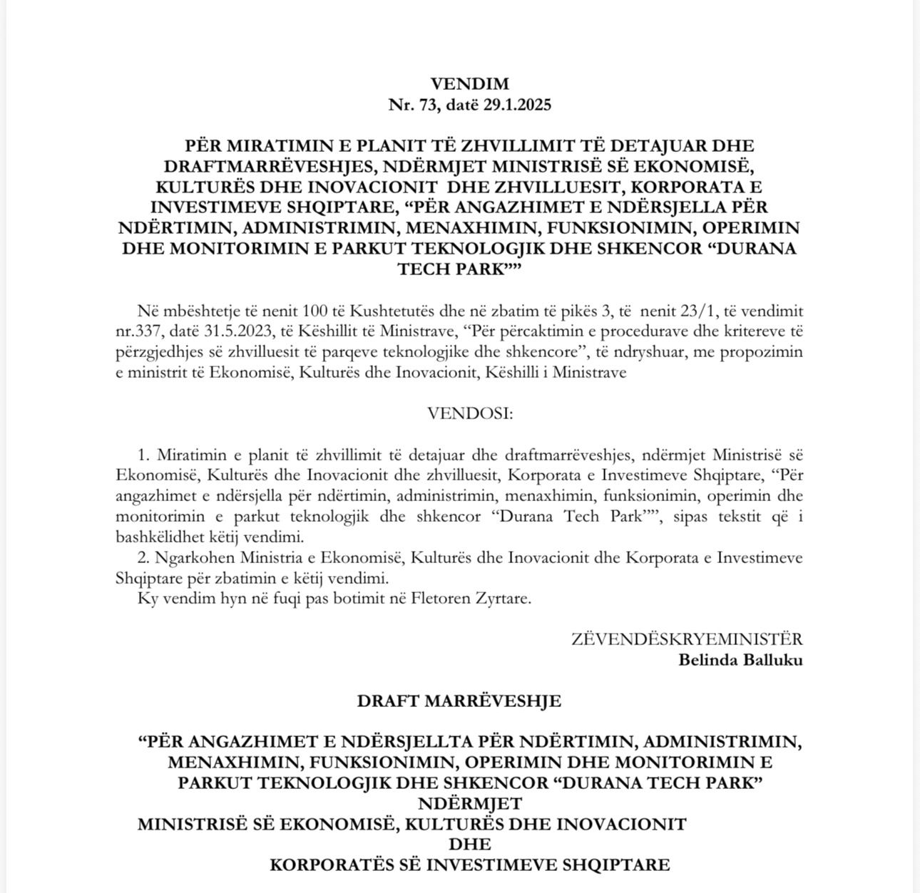 Durana Tech Park është një entitet 100% publik, me aksioner Korporatën e Investimeve Shqiptare. Aktiviteti lidhet me teknologjinë, robotikën, Inteligjencën Artificiale. Qëllimi i ligjvënësve shqiptarë është që të japin një intesivë fiskale për të tërhequr vizitorë të huaj si dhe për të nxitur punësimin e të rinjve shqiptarë nga kompani ndërkombëtare, duke sjellë vendet e punës në Shqipëri dhe duke u dhënë mundësinë të rinjve të punojnë në parkun teknologjik shqiptar, pa pasur nevojë të emigrojnë për të ndërtuar karrierën e tyre.